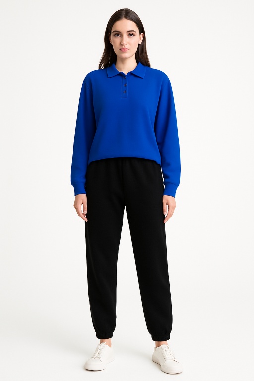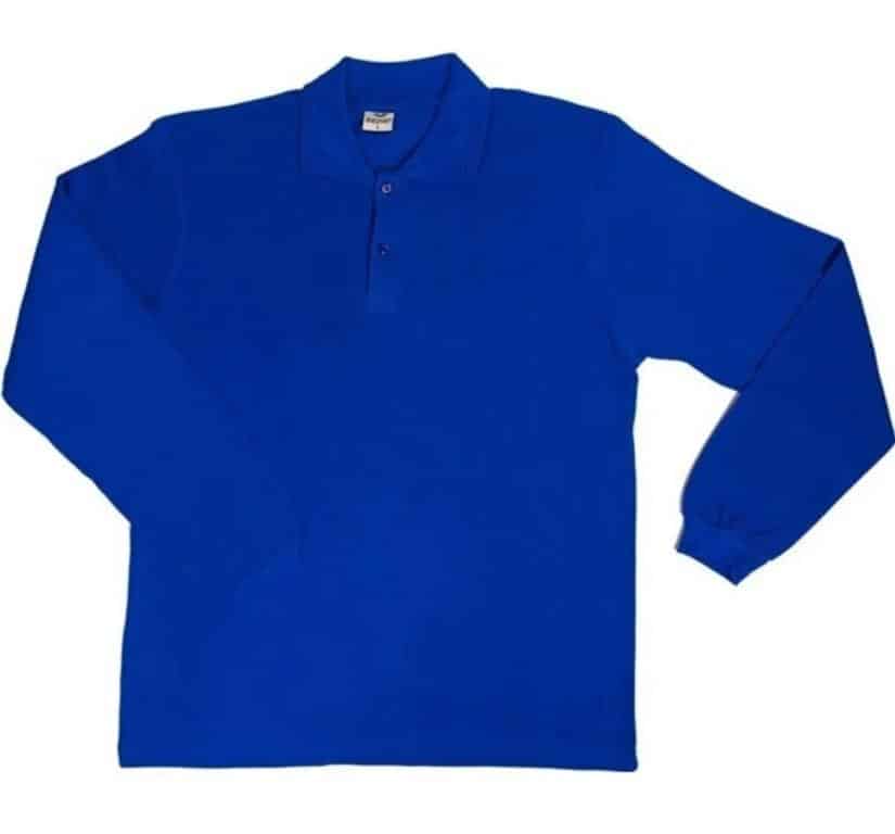 · Parlak mavi renkte, uzun kollu, polo yaka tişört